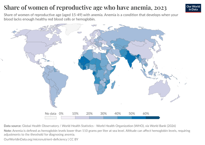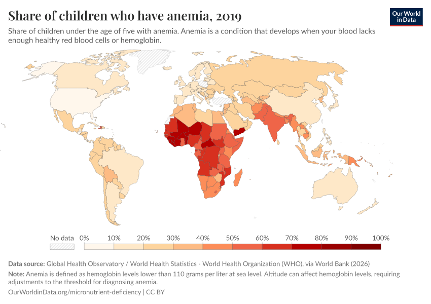 Hannah Ritchie (2024) - “Billions of people suffer from anemia, but there are cheap ways to reduce this” Published online at OurWorldinData.org. Retrieved from: 'https://chart-preview-staging.owid.pages.dev:8789/20260202-181317/billions-people-suffer-anemia-cheap-ways-reduce.html' [Online Resource] (archived on February 2, 2026).BibTeX citation