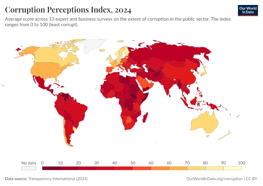Bastian Herre, Veronika Samborska, and Esteban Ortiz-Ospina (2016) - “Corruption” Published online at OurWorldinData.org. Retrieved from: 'https://chart-preview-staging.owid.pages.dev/corruption' [Online Resource]BibTeX citation