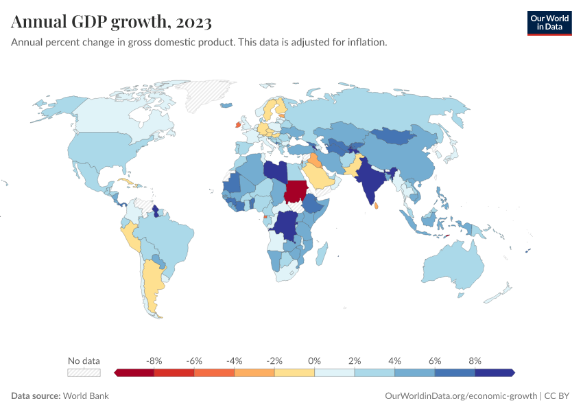 “Data Page: Annual GDP growth”. Our World in Data (2026). Data adapted from World Bank. Retrieved from https://chart-preview-staging.owid.pages.dev:8789/20260130-180113/grapher/annual-gdp-growth.html [online resource] (archived on January 30, 2026).How to cite this data