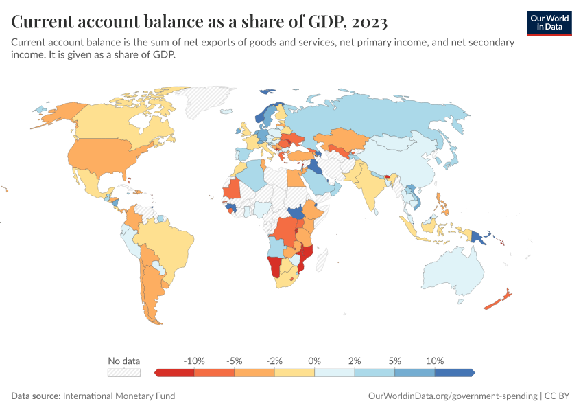 “Data Page: Current account balance as a share of GDP”. Our World in Data (2026). Data adapted from International Monetary Fund. Retrieved from https://chart-preview-staging.owid.pages.dev:8789/20251120-211749/grapher/current-account-balance-as-a-proportion-of-gdp.html [online resource] (archived on November 20, 2025).How to cite this data