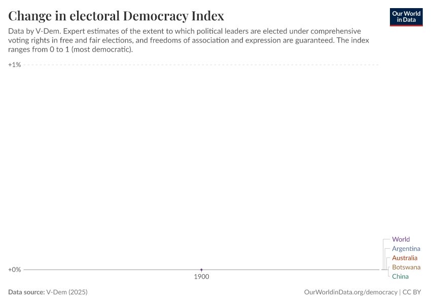 “Data Page: Electoral democracy index”, part of the following publication: Bastian Herre, Lucas Rodés-Guirao, and Esteban Ortiz-Ospina (2013) - “Democracy”. Data adapted from V-Dem. Retrieved from https://chart-preview-staging.owid.pages.dev:8789/20260119-070102/grapher/electoral-democracy-index.html [online resource] (archived on January 19, 2026).How to cite this data