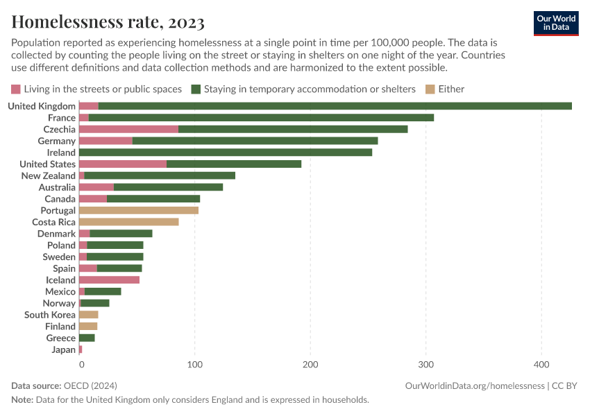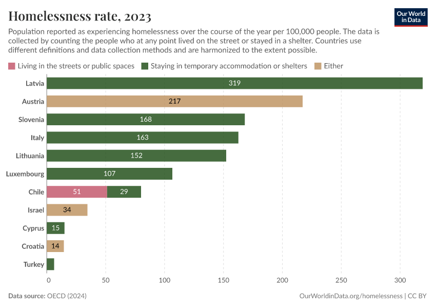 Bastian Herre and Pablo Arriagada (2024) - “Homelessness” Published online at OurWorldinData.org. Retrieved from: 'https://chart-preview-staging.owid.pages.dev/homelessness' [Online Resource]BibTeX citation