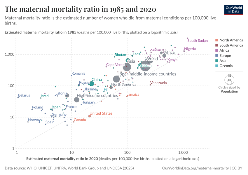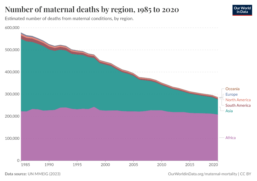 On this page, we present global data and research on maternal mortality — pregnancy-related death — how it varies around the world, how much it has been reduced over time, and what we can do to reduce the risk of pregnancy-related death further.