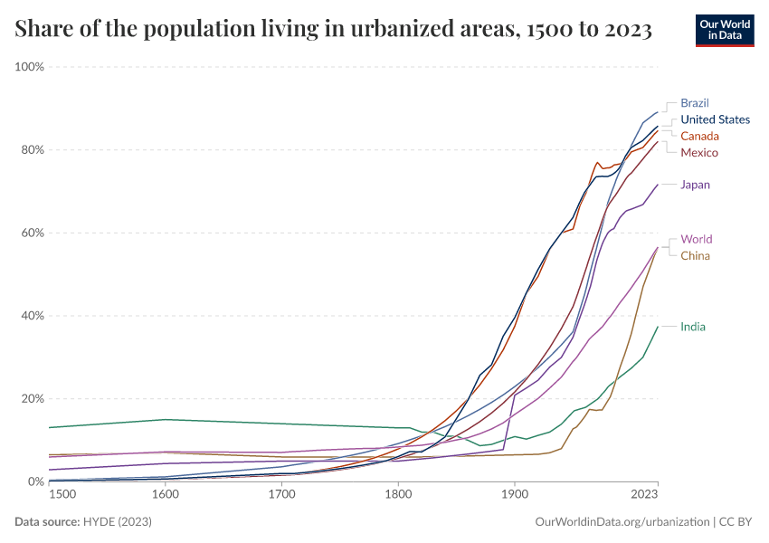 Urbanization over the past 500 years