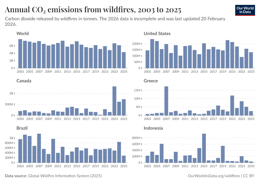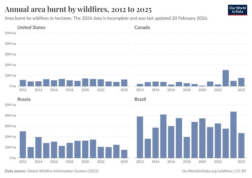 Veronika Samborska and Hannah Ritchie (2024) - “Wildfires” Published online at OurWorldinData.org. Retrieved from: 'https://chart-preview-staging.owid.pages.dev/wildfires' [Online Resource]BibTeX citation